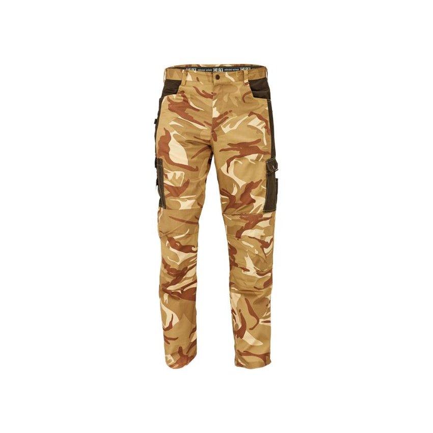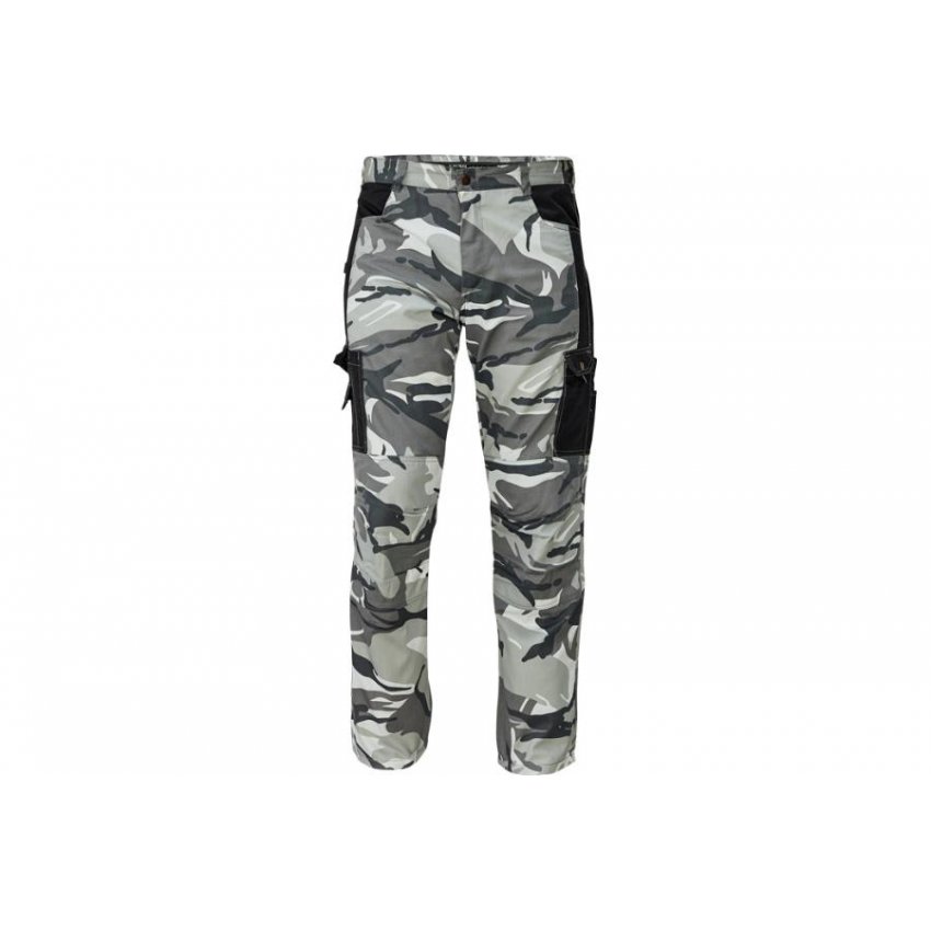Pánské kalhoty z lehkého T/C twillu 190g/m2. 2 zadní nakládané kapsy, 2 boční kapsy a 2 multifunkční kargo kapsy. Zesílená část kolen, skvěle padnoucí střih, atraktivní design kamufláž.