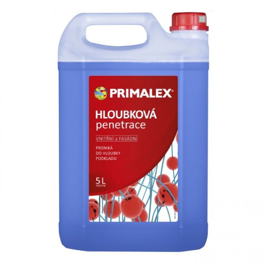 Primalex HLOUBKOVÁ PENETRACE je velmi účinný vodou ředitelný penetrační prostředek s mikrodisperzí, která proniká do hloubky podkladu, a tím zajišťuje důkladné zpevnění předchozích nátěrů, nových, méně pevných a opravovaných povrchů s různou savostí. Současně zastavuje sprašování zvětralých omítek a omezuje výkvěty solí z minerálních podkladů nebo prostupování skvrn z podkladu do nátěru. Omezuje tvorbu vlasových trhlinek a zvyšuje přilnavost dalších vrstev nátěrů. Velmi účinná pro hloubkové zpevnění minerálních podkladů, omítek i původních nátěrů v interiérech nebo na fasádách před jejich finální povrchovou úpravou (např. vápenná, vápenocementová omítka nebo beton). Vhodná i na sádrokartonové a jiné typy nasákavých lisovaných desek.