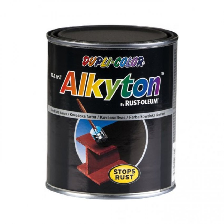Alkyton Kovářská barva černá je antikorozní, alkyd-uretanová vrchní i základní barva v jednom. Vysoký obsah kovových pigmentů vytváří atraktivní, matný, drsný povrch s kovovými odlesky. Alkyton Kovářská barva je nátěrová hmota na bázi alkydových pryskyřic. Nátěr kovářskou barvou vykazuje dobrou charakteristiku zasychání i při nižších teplotách. Kovářská barva kryje v 1 vrstvě. Účinné antikorozní pigmenty poskytují dlouhodobou antikorozní ochranu. Výrobek má velmi dobrou přilnavost i na zkorodovaný povrch po ručním očištění. Vytváří matný povrch s metalickým leskem. Obsah balení 250ml.