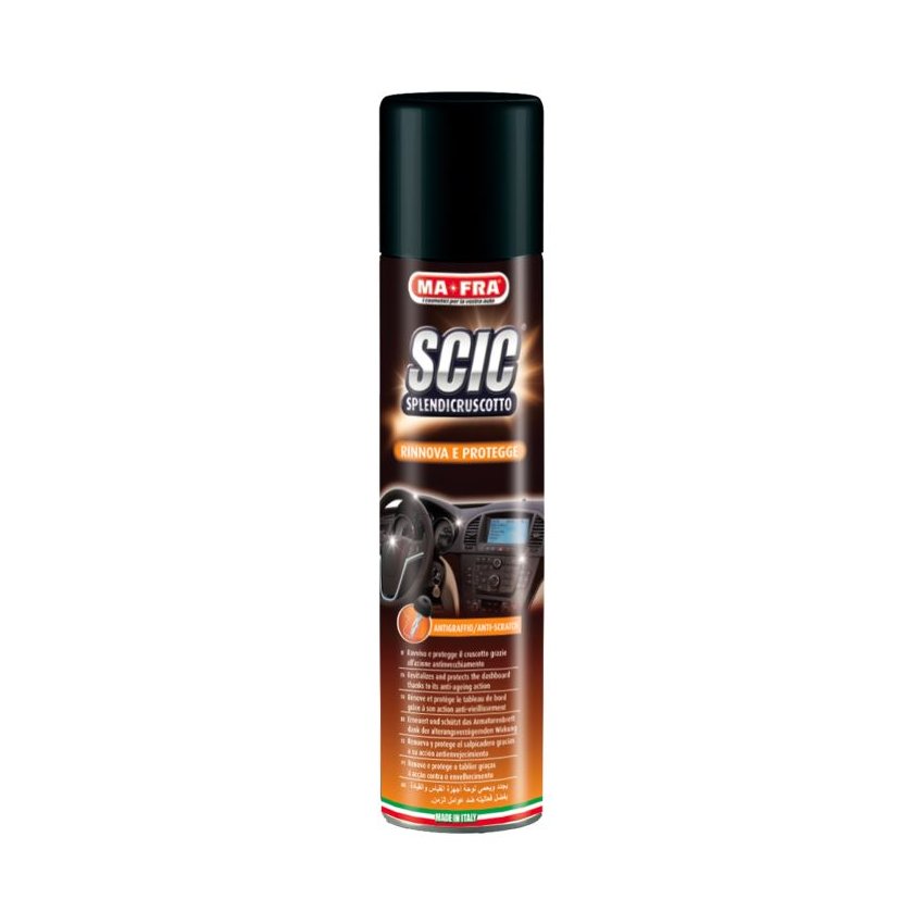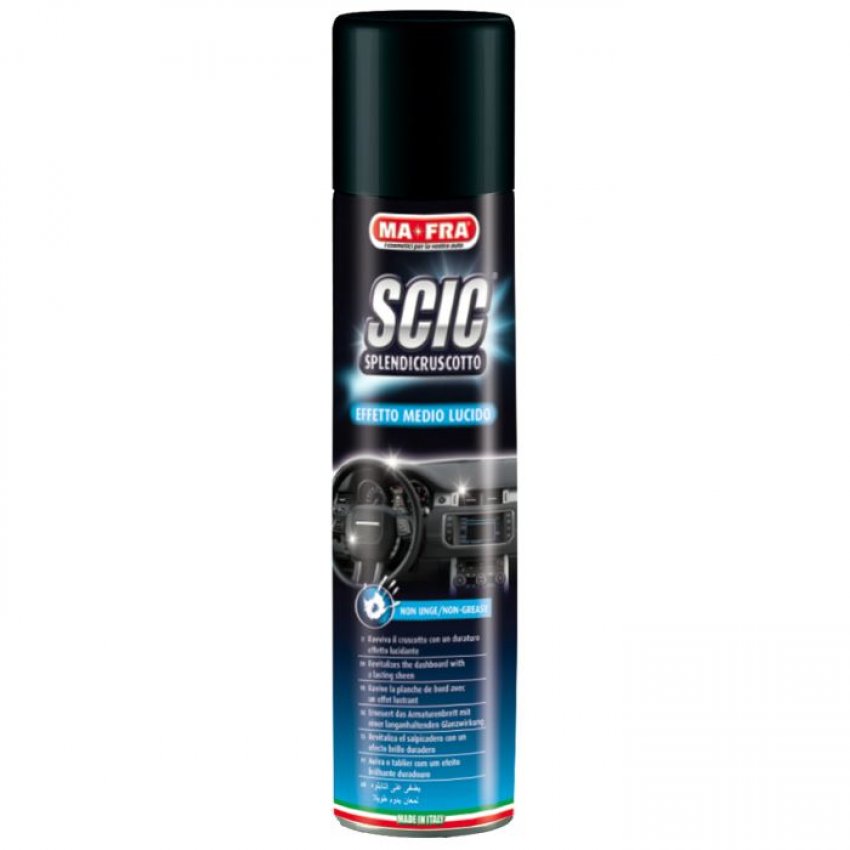 Leštidlo na přístrojové desky ve spreji s oživujícím účinkem, které leští, chrání a obnovuje původní vzhled všech vnitrních plastů, gumových povrchů a jiných syntetických materiálů jako je umělá kůže a koženka. Dokáže i mnohem víc: je perfektní také na dřevěné palubní desky, v domácnosti najde použití jako ochrana a oživující prostředek na cenné vykládané kusy nábytku. Obsahuje cenné silikony, které působí proti usazování prachu, chrání ošetrované části a propůjčují jim hebkost, živost a po dlouhou dobu také přirozený vzhled. Koncentrovaný přípravek, stačí ho opravdu málo. K získání co nejlepšího výsledku ho stačí nastříkat v malých dávkách ze vzdálenosti přibližně 20cm.
