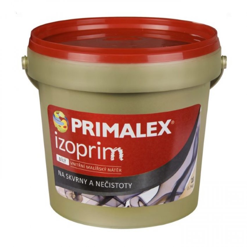 Primalex Izoprim je speciální nátěr, který díky své dokonalé izolační schopnosti garantuje zastavení pronikání skvrn (např. od kouře, sazí, nikotinu, rzi nebo vody), jež při přetření běžným nátěrem později vystupují na povrch. Jednoduchá aplikace a paropropustný, omyvatelný povrch vytváří také odpovídající základní nátěr pro případný vrchní (bílý i barevný) nátěr s možností použití jak v interiéru tak exteriéru. Ideální pro izolaci skvrn od kouře, nikotinu, sazí, rzi a vody na všechny typy vnitřních prostorů i fasády. Vhodný také jako pevný základ na plasty a neželezné kovy.