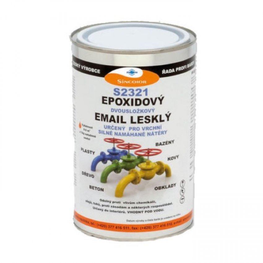 S 2321 BÍLÁ dvousložkový epoxidový vrchní email pro lesklé nátěry kovu, betonu, stavebnin, dřeva, plastu, lisovacích hmot apod. Odolný proti vlivům různých chemikálií, olejů, tuků, proti zásadám a některým rozpouštědlům. Epoxidový mail S 2321 je schválený k nátěrům povrchů přicházejících do přímého styku s pitnou vodou, potravinami a pokrmy. Vhodný pro ochranu povrchu na pracovištích s otevřenými zdroji ionizujícícho záření (ověření dekontaminovatelnosti). Balení je včetně tužidla v setu