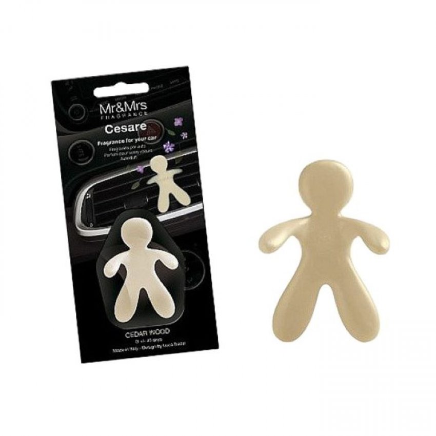 Cesare je řada stylových vůní od renomovanémho výrobce Mr & Mrs Fragrance z Itálie. Osvěžovač vzduchu je zpodobněn postavičkou a vydává příjemnou vůni. Konstrukce postavičky má ručičky uzpůsobeny tak, že ji lze snadno uchytit do mřížky ventilace automobilu. Za návrhem této jedinečné postavičky stojí věhlasný italský designér Luca Trazzi. Balení je výjimečné tím, že je pomocí scratch testeru možné otestovat vůni dříve, než si ji pořídíte. Postavička je vkusným doplňkem interiérů automobilů.