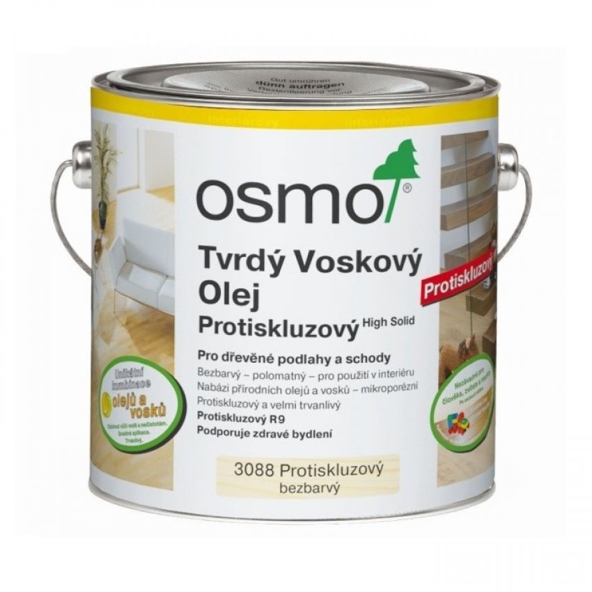 Speciální výrobek k úpravě dřevěných podlah a dřevěných schodů, u kterých je vyžadována zvýšená bezpečnost proti uklouznutí. Nátěr se snadnou údržbou se vyznačuje kromě zvláštní tvrdostí povrchu a odolností proti ošlapání svými zvláštními protiskluzovými vlastnostmi. Tvrdý voskový olej protiskluzový se vyznačuje hedvábně lesklým, ale přesto protiskluzovým povrchem. S tímto tvrdým voskovým olejem lze dosáhnout odolnosti proti skluzu třídy R9. Vhodný zejména na dřevěné podlahy ve vnitřních prostorách, kde je dbáno na bezpečnost proti uklouznutí.