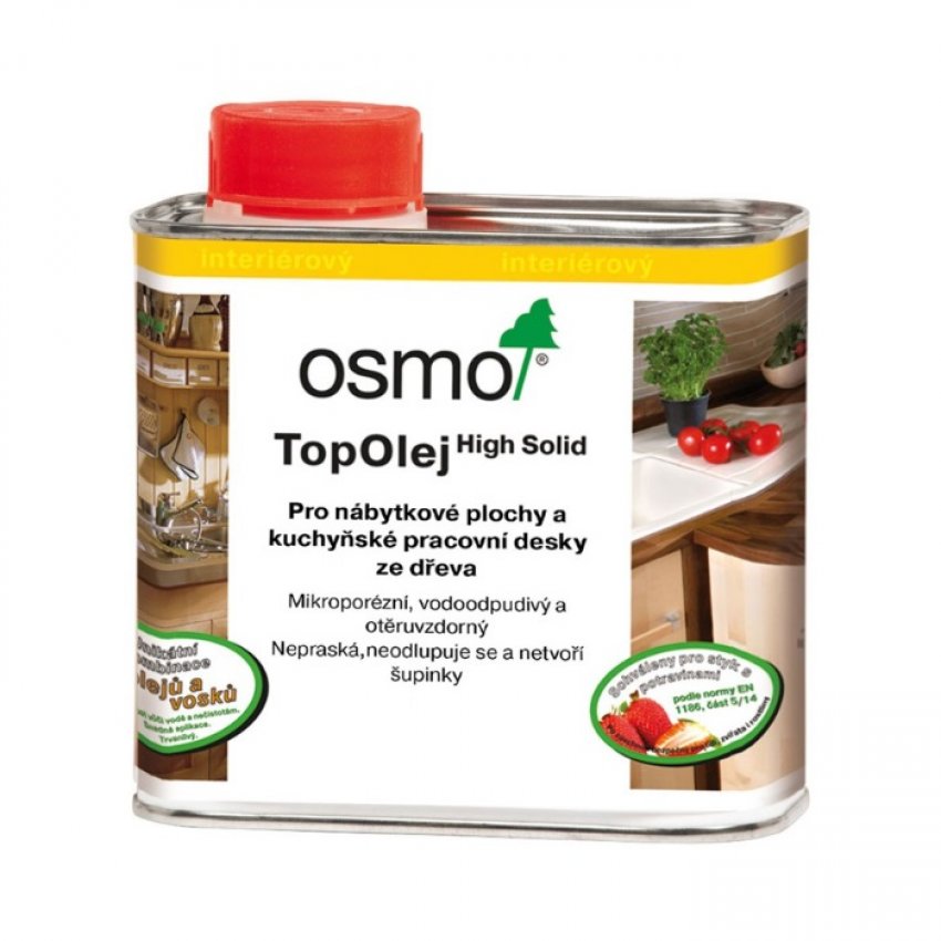 Nátěr s kombinací oleje a vosku – speciálně vyvinutý k úpravě povrchu nábytku a pracovních (kuchyňských) desek ze dřeva. Bezbarvý nebo transparentní, hedvábně matný, k použití uvnitř. Top Olej učiní povrch dřeva odolným vůči skvrnám a chemikáliím používaným v domácnosti. Produkt je odolný vůči slinám a potu, je certifikovaný pro styk s potravinami. Vhodný i na dětské hračky. Počet nátěrů: u dřeva bez povrchové úpravy dva nátěry, v případě renovace stačí zpravidla jeden nátěr na očištěný povrch – bez obrušování. 1l stačí při jednom nátěru na cca 24m2.