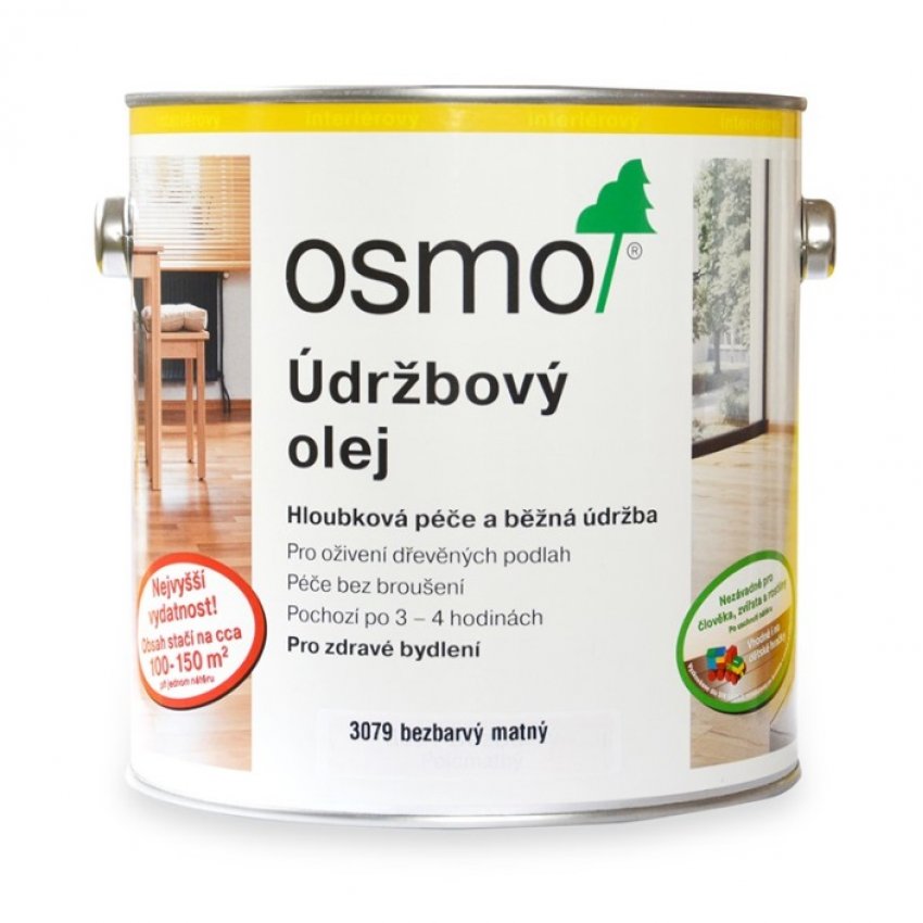 Osmo Údržbový olej zajišťuje hloubkovou péči i běžnou údržbu olejovaných podlah. Zašlé a matné podlahy Osmo Údržbový olej oživí. Při včasném použití Osmo Údržbového oleje (neošetřené dřevo nesmí být vystaveno okolním vlivům) zabráníte pracnému broušení a nutnosti provádět renovační nátěry. Je určený pro všechny olejované dřevěné podlahy jako jsou podlahy z masivního dřeva, masivní prkna, parkety, palubky, OSB desky a korkové podlahy stejně jako pro schodiště a nábytek. Zvláště doporučeno pro použití u silně namáhaných podlah (restaurace, muzea a další typy silně namáhaných podlah).