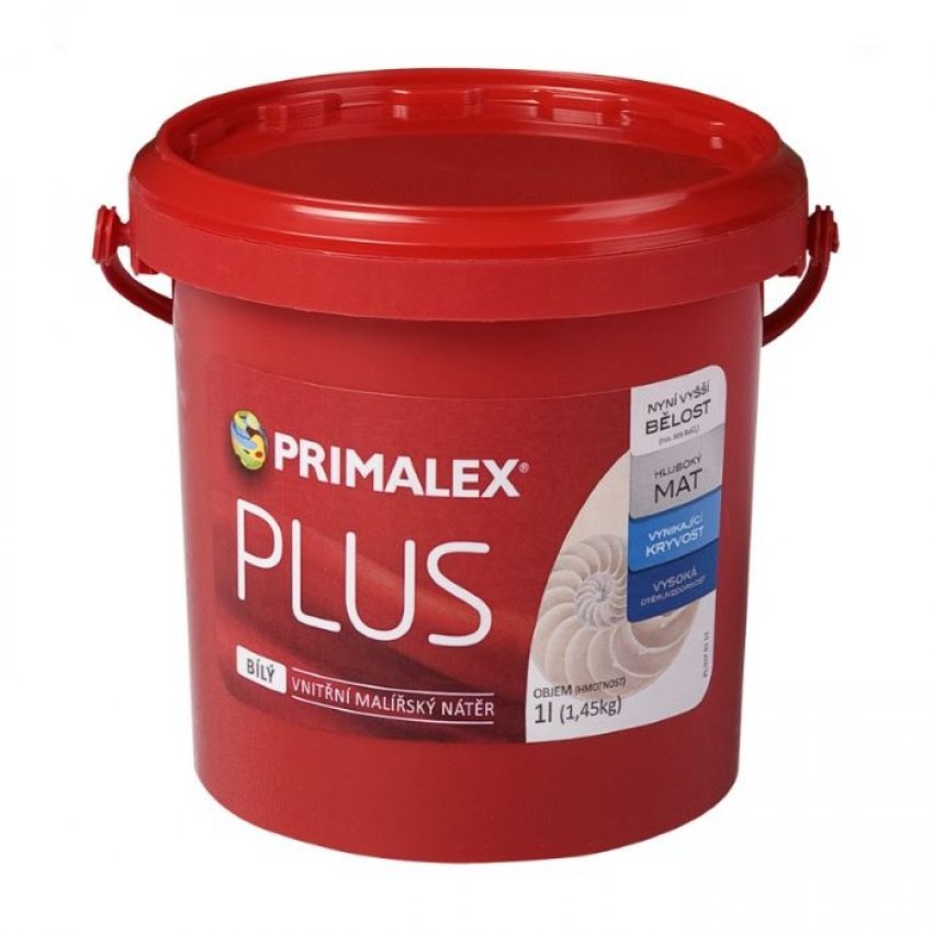 Primalex PLUS Bílý je nejprodávanější a nejoblíbenější produkt značky Primalex v oblasti vnitřních malířských nátěrů. Současná receptura zachovává osvědčené vlastnosti – výbornou kryvost a vysokou otěruvzdornost a zároveň garantuje jeho vyšší bělost (min. 86% BaSO4) a hluboce matný konečný vzhled produktu. Vhodný pro malování minerálních povrchů ve středně zatěžovaných interiérech např. stěn a stropů ložnic, obývacích pokojů či chodeb, ale také kanceláří, škol nebo dalších komerčních objektů.